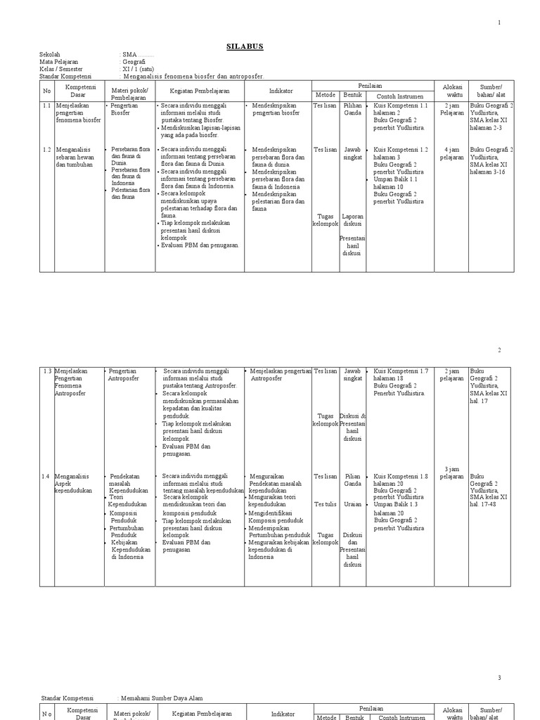 Silabus kompetisi sains nasional (ksn) smp tahun 2020 memuat lingkup materi yang akan diujikan pada kegiatan ksn. Pada kesempatan kali ini admin ingin share perangkat pembelajaran download silabus geografi kelas 11 sma semester 1 dan 2 kurikulum 2013 silabus k13 geografi. Download lengkap silabus geografi sma kelas xi. Pengembangan silabus geografi geografi ktsp man wonosari wonosari. Silabus mata pelajaran merupakan salah satu jenis perangkat pembelajaran yang menjadi dasar bagi seorang guru dalam membuat perangkat.